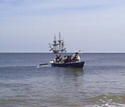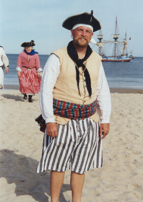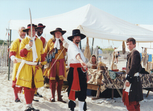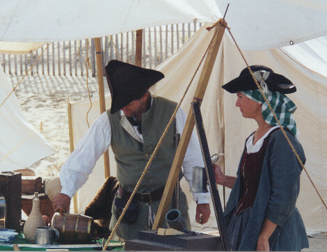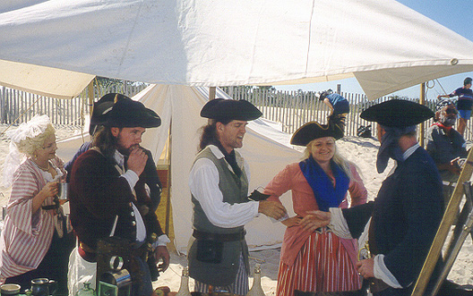Bloody Davy greets Malruck and Christine, while Rummy O'Nally,
