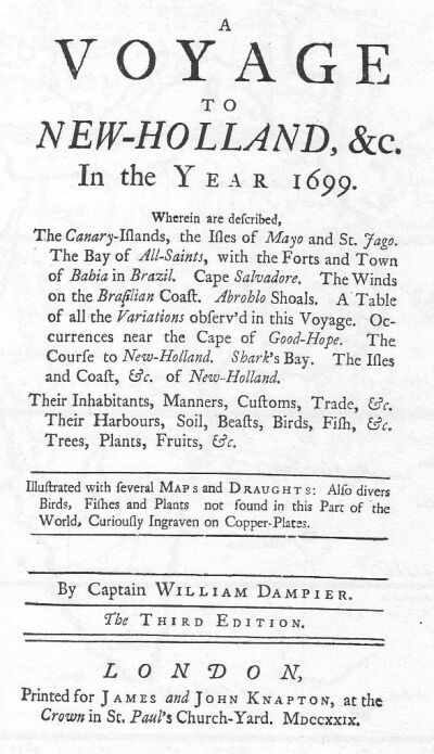 Moreover, which I had not opportunity of doing in my former voyages; having now had in the ship with me a person skilled in drawing, I have by this means been enabled, for the greater satisfaction of the curious reader, to present him with exact cuts and figures of several of the principal and most remarkable of those birds, beasts, fishes and plants, which are described in the following narrative; and also of several which, not being able to give any better or so good an account of, as by causing them to be exactly engraven, the reader will not find any further description of them, but only that they were found in such or such particular countries. The plants themselves are in the hands of the ingenious Dr. Woodward. I could have caused many others to be drawn in like manner but that I resolved to confine myself to such only as had some very remarkable difference in the shape of their principal parts from any that are found in Europe. I have besides several birds and fishes ready drawn, which I could not put into the present volume because they were found in countries to the description whereof the following narrative does not reach. For, being obliged to prepare for another voyage sooner than I at first expected, I have not been able to continue the ensuing narrative any further than to my departure from the coast of New Holland. But if it please God that I return again safe, the reader may expect a continuation of this voyage from my departure from New Holland till the foundering of my ship near the island of Ascension.