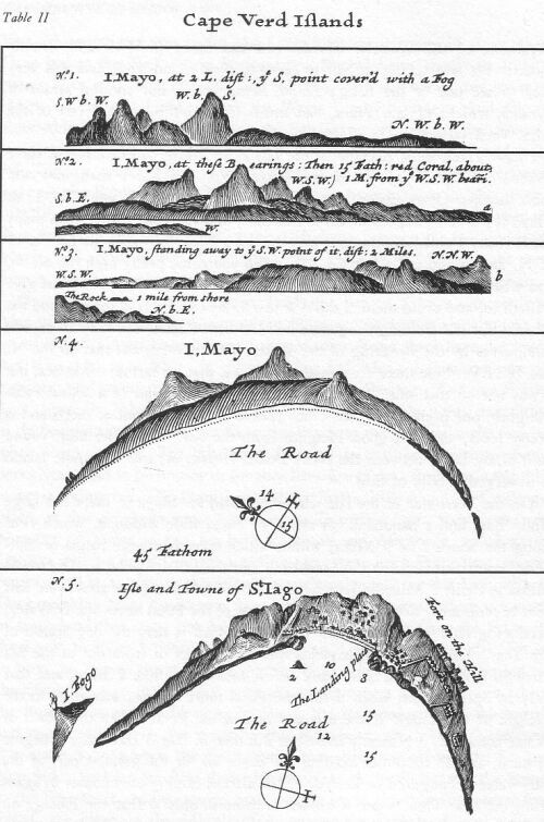 The first land we saw after we were out of the Channel was Cape Finisterre, which we made on the 19th; and on the 28th made Lancerota, one of the Canary Islands of which, and of Allegrance, another of them, I have here given the sights, as they both appeared to us at two several bearings and distances.