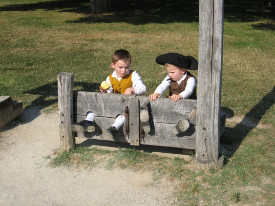 Children in the stocks... with an apple...
